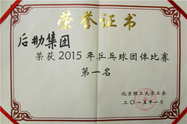 2015年1月20日下午,米兰milan官方网站2014年教职工乒乓球比赛在学校体育馆拉开帷幕。来自后勤集团的陈洋、李锋博、高建立、王艳、陈健、逯贵顺、王京、麦穗琴组成后勤集团代表队,以全胜的战绩成功晋级八强;21日下午,后勤代表队坚持不懈,一路过关斩将,最终登顶成功,获得校工会乒乓球团体赛第一名。