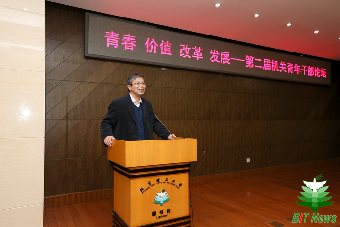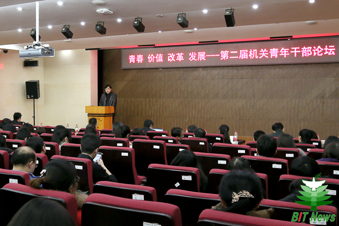 在本次论坛上,蔺伟总结了机关青年联谊会2014年所做的主要工作,介绍了 2015年上半年工作安排。机关青年联谊会秘书长赵汐介绍了新媒体平台——“BIT QINGNIAN”微信公众订阅号的概况,包括板块分布、运行现状、存在的问题等,并提出了下一步工作设想。