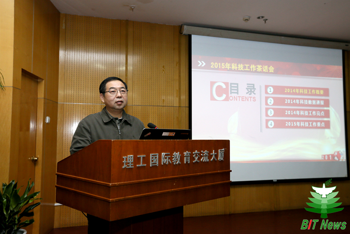 胡海岩在讲话中就学校建设理工为主的亚洲一流到亚洲顶级再到世界一流大学的目标和路径进行了描绘,就我校与亚洲、世界参照高校的差距和我校下一步努力的方向,与在座的老师进行了交流。希望全校科技工作者紧紧围绕国际学术前沿和国家重大需求,结合学校综合改革方案,继续强化基础研究和巩固国防科技优势,不断提升原始创新能力,不断提高科技投入产出效益,不断增强国际竞争力,为实现北理梦贡献力量。