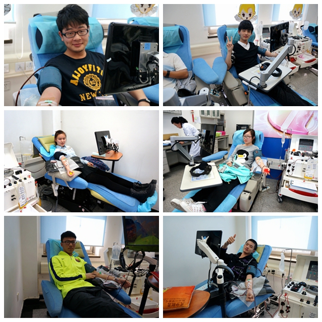 上午11:00,随着第一位志愿献血者血小板的成功采集,本次志愿活动也被拉向高潮。人数最多时,我校曾达到过20余位献血者同时进行采集的时刻,场面蔚为壮观。在此次成分献血活动中,共有54人参加成分献血,42人通过体检成功捐献,共计捐献血小板42个治疗量,为我校成分血捐献事业的更好开展打下了坚实的基础。同学们捐献的每一单位血小板,都将被用来拯救他人的生命,想来着实让人激动不已!实在不得不令人振臂高呼:北理学子,好样的!