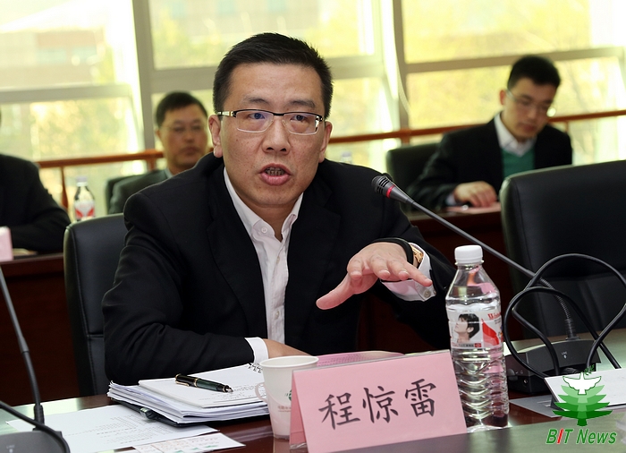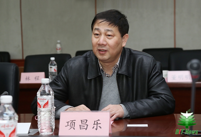 机械与车辆学院副院长胡纪滨,介绍了学校自延安自然科学院至今的发展历程,学校的重点优势学科和“强地、扬信、拓天”的发展战略。胡院长列举了我校近年来在国庆阅兵、奥运智能编排、烟火技术、电动大客车、神八、嫦娥二号等工作中提供的关键技术,介绍了机械与车辆学院的专业分布、学科建设成果;就新能源车辆、无人车、半主动悬挂、发动机、制造等方面详细介绍了机械与车辆学院的科研情况。科学技术研究院常务副院长王鲁介绍了我校在信息电子、光电、自动化、计算机、软件等跨学院的交叉学科优势,以及近年来瞄准科技前沿领域取得的显著成果。