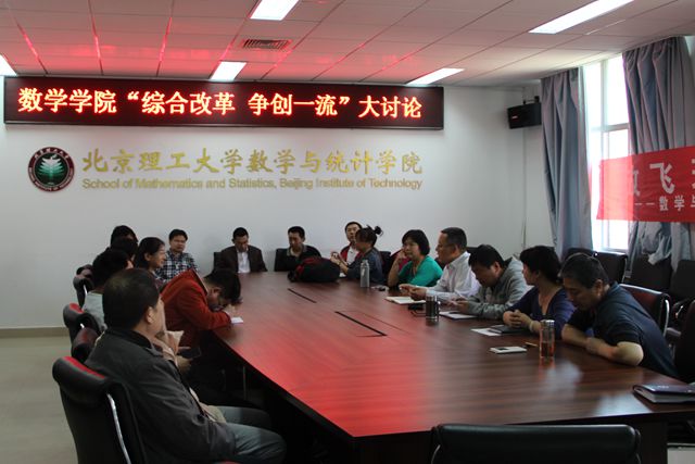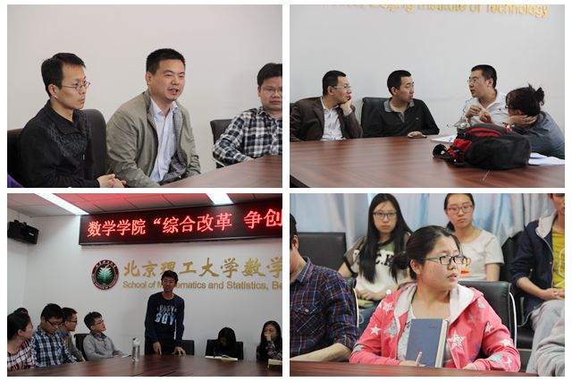 4月24日下午,数学与统计学院“综合改革 争创一流”大讨论在良乡校区理学楼A305会议室召开。学院领导班子成员及部分教师和学生代表出席了大讨论。讨论会分为教师代表组和学生代表组两个部分召开。