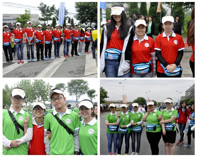 长走方阵分为红色、绿色、蓝色和黄色,分别代表着爱国、敬业、诚信和友善等中华传统美德。由我校志愿者组成的红色和绿色方阵负责方阵的集结和秩序的维护,为国际友人提供英语咨询,预防拥挤和踩踏等突发情况,有序引导参加长走人员出发。