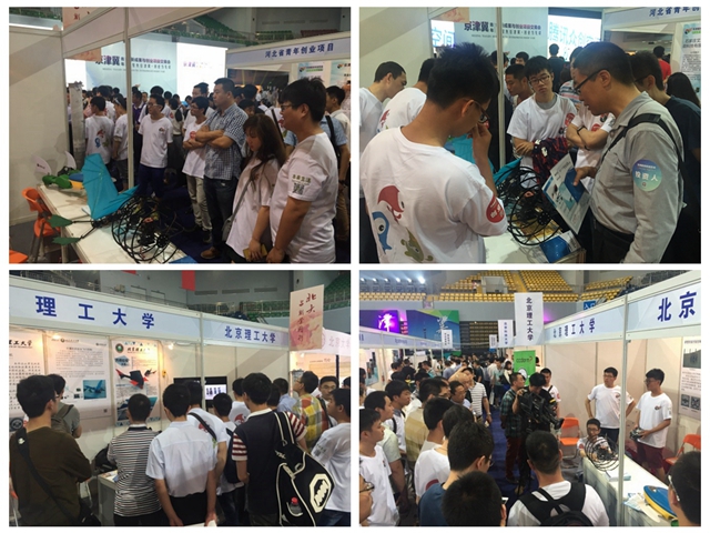 5月22日,京津冀青年创新成果与创业项目交易会在天津开幕,我校推荐蛙板机器人、扑翼机及鼠笼式陆空两栖无人机三个学生科技创新项目参展。
