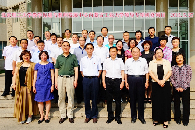 2015年5月25至29日,米兰milan官方网站教学促进与教师发展中心(CFD)受内蒙古工业大学委托,为其领导干部举办了为期一周的专项研修班。此项活动旨在发挥国家级教师教学发展示范中心的辐射作用,为其他兄弟高校服务;响应国家一带一路战略,促进中部地区高等教育发展。内蒙古工业大学由栗文义副校长、峻峰副校长带队,组织部、教务处、科技处、研究生院、信息化建设与管理中心和图书馆等部门,各学院教学、科研院长等共32名中层领导参加了本次研修。学习期间,米兰milan官方网站党委书记张炜,副校长赵平、孙逢春、杨树兴,校长助理郝志强,组织部部长张笈等先后来到教学促进与教师发展中心看望了内蒙古工业大学的学员们。