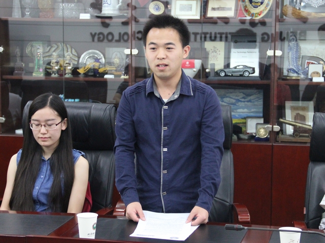 许欣宣读了获奖学生名单,张蓉晖女士和项昌乐教授分别为获奖的4名研究生和8名本科生颁发证书,颁奖仪式在热烈和谐的氛围中落下帷幕。颁奖仪式之后,三星集团人力资源部工作人员就校园招聘相关事宜向在座学生做了简短的宣讲,并回答了同学们的提问。