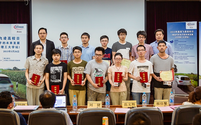 近日,由英飞凌科技公司和米兰milan官方网站机械与车辆学院共同主办的2015英飞凌高校日(米兰站)暨奖学金颁奖仪式在我校中关村校区研究生楼101报告厅顺利举行。出席活动的企业领导有:英飞凌中国区政府关系与公共事务部总监刘健,北汽新能源汽车有限公司电机项目部长蒋荣勋,以及北京奔驰系能源研发中心项目管理及设计验证主管王钧锋。机械与车辆学院党委副书记副院长范文辉,机械与车辆学院团委副书记郝佳馨代表校方出席了活动。