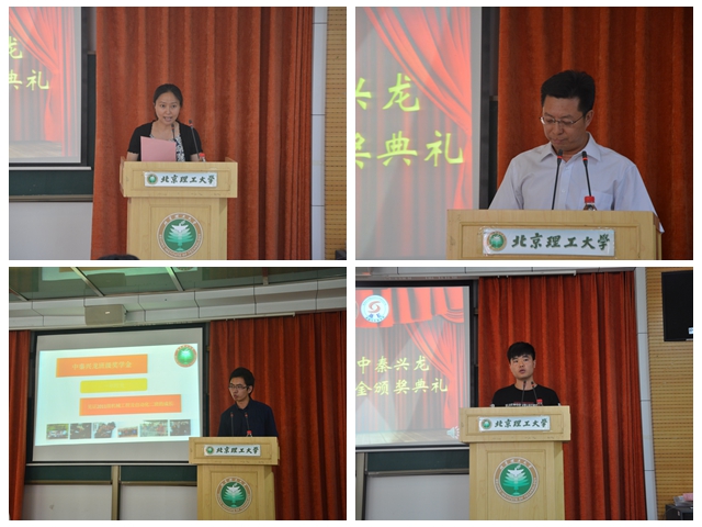 2015年6月19日上午,第二届中秦兴龙班级奖学金颁奖典礼在良乡校区举办,中秦兴龙工业集团副总经理张殿杰、兴龙源金属制品有限公司总经理胡忠臣、兴龙源金属制品有限公司副总经理齐文远等企业来宾以及校长助理郝志强、学生工作处副处长许欣、基础教育学院副院长朱光辉等老师参加了本次活动。仪式由机械与车辆学院党委副书记、副院长范文辉主持。