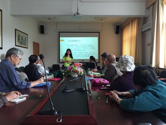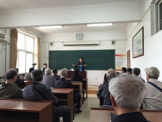 助老服务队也在中关村校区周边的社区开展了服务活动,队员前往社区和学校离退休工作处开展了调研。在此期间,通过学校离退休工作处的帮助,从那里了解到了离休干部的生活现状和各项需求。离休干部是在建国前参加中国共产党所领导的革命战争、脱产享受供给制待遇的和从事地下革命工作有过重大贡献的人,借此机会,能给离休干部送去关怀,对助老服务队的每个队员来说,都是一件特别自豪的事情。所以助老服务队的第一堂课服务的对象就是离休干部,在离退休工作处老师们的帮助下,活动联系到了很多离休干部,他们也都很高兴地赶到老年服务中心参加了讲解服务。