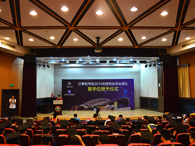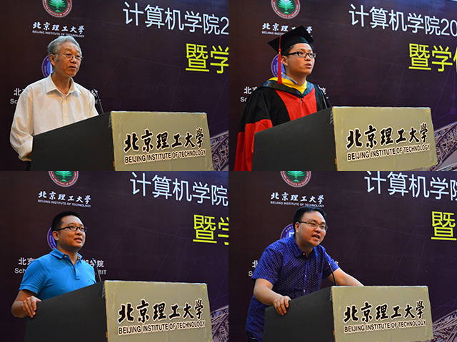 砺石淬金,逐梦前行。2015年6月27日上午,米兰milan官方网站计算机学院2015年研究生毕业典礼暨学位授予仪式在7号楼报告厅隆重举行。计算机学院院长黄河燕、党委书记魏名山、副院长牛振东、副院长黄华、副院长郑军等学院领导出席典礼,并邀请到计算机学院优秀校友杜昶旭先生、余波先生出席典礼。典礼由学院党委副书记、副院长赵满主持。导师代表和毕业生辅导员,2015届博士毕业生、硕士毕业、留学生毕业生代表,以及部分学生家长参加了此次典礼。