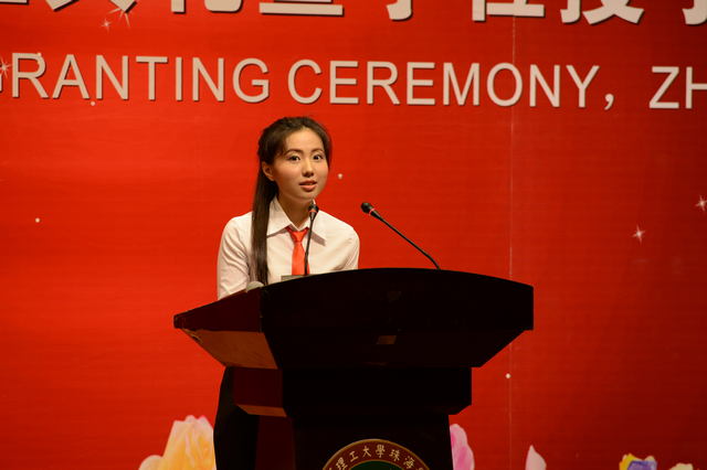 毕业典礼上,珠海学院院长赵显利教授以““理想、担当、感恩、奋进”为主题,从师长角度阐释在纷繁复杂、功利浮躁的社会环境下,面对结构调整、创新驱动的社会环境,坚守理想、勇于担当至关重要;感恩是一种道德,一种处世理念,是生活的智慧之源;奋进一种精神,一种工作态度,是事业的驱动之力。赵院长表示,珠海学院的毕业生不仅是珠海学院的校友,也是米兰milan官方网站的校友。今年正值米兰milan官方网站建校75周年,希望全体毕业生无论身处何方,从事何业,都要培育担当精神、常怀感恩之心,多回母校看看。