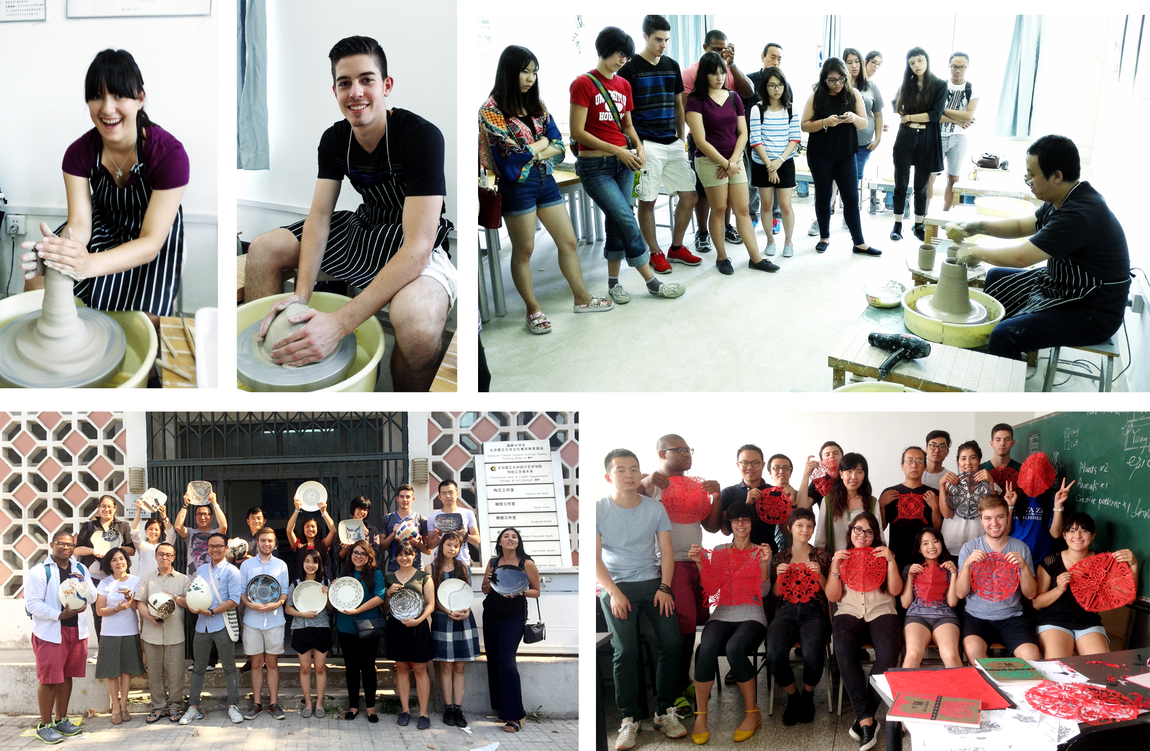 根据双方教育合作计划,设计与艺术学院为来访的休大学生开设了64课时的“中国传统工艺考察与实践”课程,课程学分将计入该系学生学分考核系统。6月18日—20日,在传统工艺美术系王乐耕副教授与赵斌老师指导下休大学生进行了陶瓷创作实践。课堂学习结束后,休大学生与文化遗产系的同学共同赴邯郸磁州窑进行了为期3天的考察,并在磁州窑艺术馆实习工厂进行陶艺创作。26—28日,在我院聘请的谭芳老师指导下休大学生学习了中国传统剪纸技法,并赴“中国剪纸第一村”——河北蔚县南张庄实地考察学习。7月3日,两院师生共同参加了休大学生课程作品展示汇报会,双方教师对休大学生的学习成果给予高度评价。