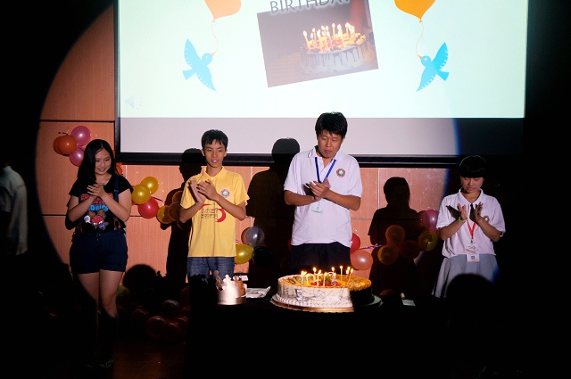此外,晚会还精心准备了一个特别环节——为在科学营活动期间过生日的营员和带队老师集体庆生。家人朋友的视频祝福、蛋糕、蜡烛,全场合唱生日歌,温馨的场面感动了在场的每个人。晚会的最后,全体志愿者演唱的青春版校歌更是将全场的气氛推向了高潮。