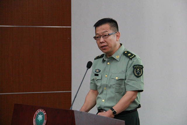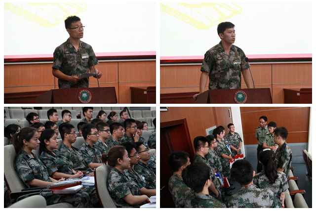 2014年优秀带队干部、化学学院辅导员,2015年学生军训旅3营10连指导员张锋以他在之前军训带队中亲身经历的两个故事为切入点,提醒带队干部们将安全放在首位,做好学生成长的催化剂;大家相互配合,彼此支持,培养战友友谊;在军训中服从命令听指挥,多沟通少抱怨。