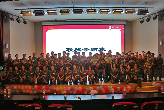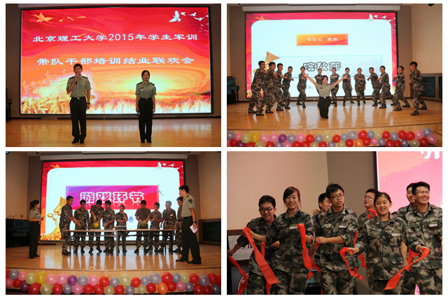 联欢会在全体带队干部合唱《渴望光荣》中结束。至此2015年学生军训带队干部集训也落下帷幕。为期一周的带队干部集训包括素质拓展、连队建设培训、突发事件处理培训、校史校情教育、军体拳训练、军歌教学和文体活动等。通过集训,使带队干部迅速熟悉军训环境,点燃工作热情,提升军事素质。相信在即将到来的军训中,带队干部们会以身作则,言传身教,加强学生的国防意识,引导新生明耻上进,帮助学生更好地成长。