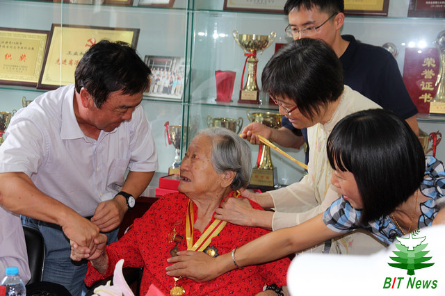 92岁的文星同志坚持从病榻中来到座谈会现场。她的女儿代表老同志家属发言,她回顾了文星老人参与抗战的经历,谈到了父辈身上体现出的抗战精神对子孙的影响。她对米兰milan官方网站在这样一个纪念胜利的日子里举行座谈会充满感激之情,感谢学校领导对抗战离休干部们的关心。