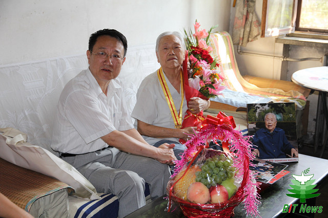 当天,张炜还专门到未能出席座谈会的抗战时期离休干部代表88岁的康兰波同志家中探望。他详细询问了康老师的生活起居和身体状况,为她佩戴上“中国人民抗日战争胜利70周年纪念章”,并赠送慰问品,祝愿他身体健康、安享晚年。