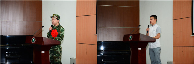 2011级退伍学生代表,来自机械与车辆学院的黄胜分享了自己在部队的经历和体会,勉励新兵们要敢担当,做好“革命一块砖,哪里需要往哪搬”,在不断锻炼自我的过程中,心系母校,报效祖国。