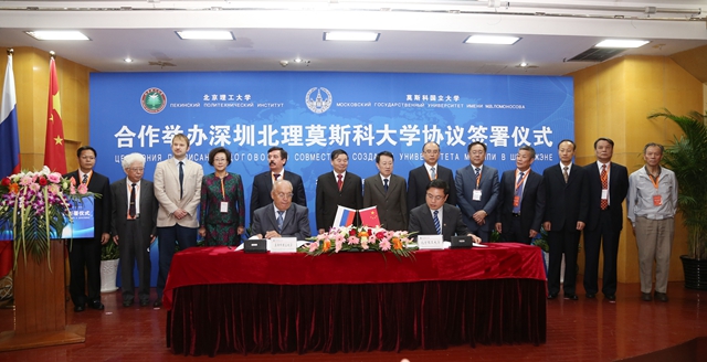 一一2014年9月5日,在教育部、工业和信息化部、深圳市领导的见证下,米兰milan官方网站校长胡海岩、莫斯科大学校长维克多•萨多夫尼奇在北京共同签署了《米兰milan官方网站与莫斯科国立罗蒙诺索夫大学关于合作举办深圳北理莫斯科大学的协议》。协议规定了合作大学的办学目标、招生规模、开办专业、师资建设、管理体系等有关办学事项。