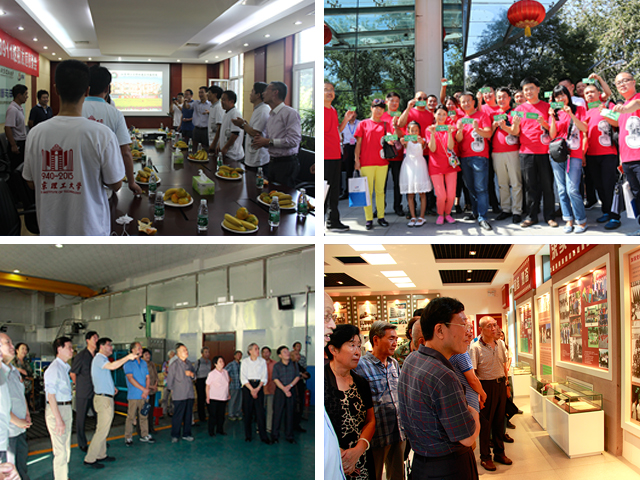 每位校友都领取到了学院精心准备的校庆纪念品礼包,学院文化衫和胸前的校徽在“校庆蓝”的阳光下闪着耀眼的光芒。校友们在熟悉校园里,再次拍上一张集体照;在大食堂里,共同分享集体就餐的味道;在曾经工作过的实验室里,了解了如今实验设施和条件的巨大进步;在志愿者的引导下参观了校史馆、艺术馆,分享今昔甘苦和发展荣耀。许多校友纷纷留下赠言,为母校75年来的辉煌成就而感动,也期待着母校培养更多人才,造就更多在社会各界熠熠生辉的杰出人才。