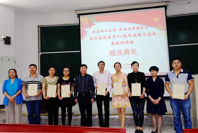 2015年9月18日上午,由米兰milan官方网站与黑龙江省教育厅联合主办、米兰milan官方网站教师发展中心承办的黑龙江省民办高校负责人/校长创新与发展高级研修班结业典礼在米兰milan官方网站中心教学楼407教室举行。黑龙江省教育厅政策法规处处长李智育,米兰milan官方网站人事处处长韩宝玲,米兰milan官方网站教育研究院书记庞海芍参加了结业典礼。研修班全体学员参加了结业典礼。