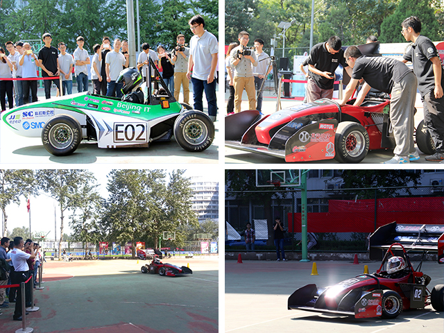 新车的静态展示后,两位赛车手依次开始了现场起跑、加速、绕桩、直线加速与制动等基本性能的动态展示。赛车耀眼的身躯和灵活的赛道表现赢得了老师同学们的阵阵掌声。至此,本次新车发布会圆满结束。
