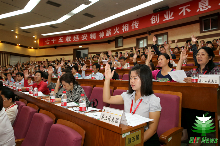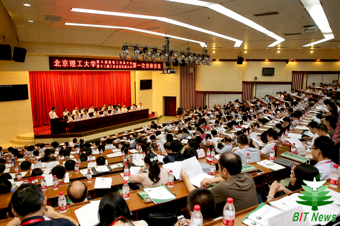 大会号召全校教职工,在学校党委的领导下,高举中国特色社会主义伟大旗帜,以邓小平理论、“三个代表”重要思想、科学发展观为指导,深入学习贯彻党的十八届三中、四中全会精神,习近平总书记系列重要讲话精神,以及中国工会十六大、北京市工会工作会议以及北京市工会十三大精神,全面落实学校第十四次党代会的战略部署,围绕学校发展战略和中心工作,团结引导激励广大教职工发挥主力军作用,为建设“世界一流理工大学”贡献力量!