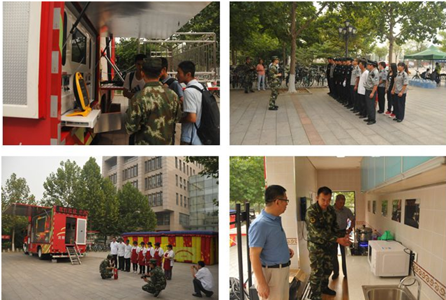 本次活动通过消防科普宣传车进行宣传,具体内容包括:消防知识查询及演示,火灾自动化报警与喷淋演示,电路过载短路火灾实验,119报警体验,烟雾模型和模拟逃生帐篷等。同时,消防官兵结合校园火灾典型具体案例,通过现场讲解、摆放宣传展板等形式,为校区师生员工详细介绍了火灾成因、逃生方法、如何使用灭火设备等消防安全知识,使广大师生员工对消防安全知识及正确使用消防器材有了新的认识。