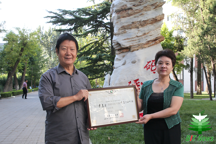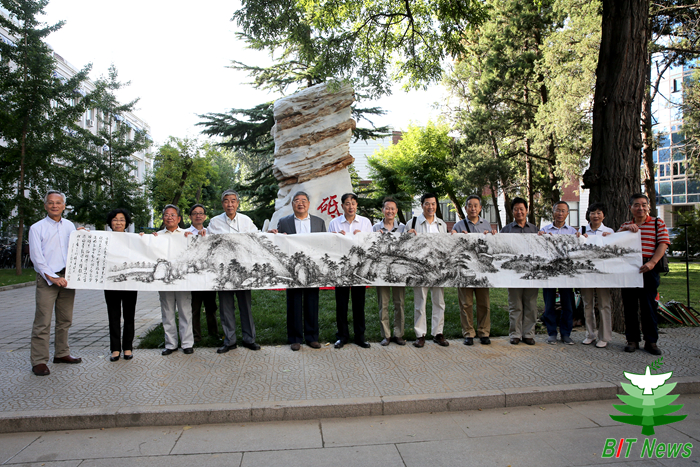 秉承京工精神砥砺前行,毕业五十载情系母校。2015年9月19日,在米兰milan官方网站建校七十五周年校庆之际,光电学院41642班“砥砺”文化石、书画捐赠仪式在七号教学楼前举行。米兰milan官方网站党委副书记、副校长项昌乐,原党委书记焦文俊,宣传部部长包丽颖,校友会办公室主任段丽萍,后勤集团常务副总经理宋希博,光电学院院长薛唯,规划处副处长周连景,教育基金会办公室主任罗雪和41642班部分校友参加了捐赠仪式。仪式由光电学院院长薛唯主持。