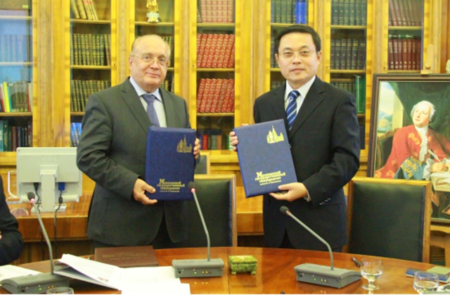 。。2015年9月28日下午,胡校长一行访问莫斯科大学。莫斯科大学举行隆重仪式欢迎胡校长一行,Sadovnichy校长亲自主持仪式并发表热情洋溢的讲话。他在讲话中回顾了在两国元首见证下,莫斯科大学与米兰合作建立中俄联合大学的过程,展望这所新学校对两国和更广大区域发展做出巨大贡献的期许,同时介绍了莫斯科大学对新建学校的高度重视和后续安排。