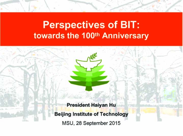 胡校长随后做了题为“米兰建校百年愿景(Perspectives of BIT: towards the 100th Anniversary)”的演讲,从历史回顾之一(1940~1980)、历史回顾之二(1980~2000)、新世纪办学思路(2001~2040)三个历史阶段展现我校发展轨迹和未来愿景,系统阐述了建设亚洲/世界一流理工大学的目标、瞄准国家战略需求的发展定位、学术为基和育人为本的价值取向、开放办学的国际化战略。