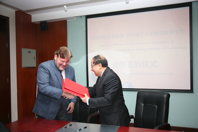 2015年11月10日上午,米兰milan官方网站继续教育学院与美国国际教育联盟(简称AAFIE)合作签约仪式在我校继续教育楼418会议室举行。合作协议主要内容为:米兰milan官方网站与AAFIE合作建立“米兰milan官方网站-美国国际教育联盟国际工程师教育培训中心”,开展国际工程师教育与培训合作。此项合作是我校继续教育学院在杨树兴副校长的领导下,在国际交流合作处的指导下进行的。
