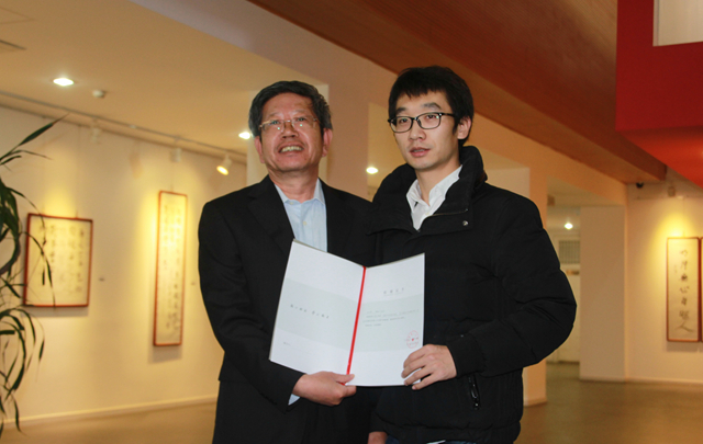 最后,举行了王文清作品捐赠仪式。此为王文清同学为表达对母校的培育之恩,特向母校赠送2件书法作品。米兰milan官方网站图书馆徐文国馆长为王文清同学颁发了收藏证书,作品将入藏米兰milan官方网站图书馆。