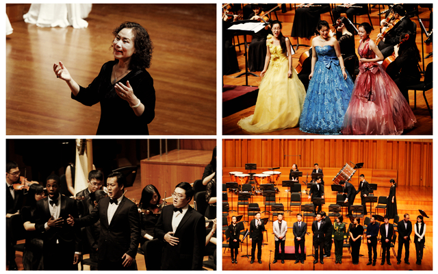 交响合唱单元选取了皮特罗·马斯卡尼的《村民合唱》,“圆舞曲之王”小约翰·施特劳斯编曲的《闲聊波卡尔》、《蓝色多瑙河圆舞曲》等经典曲目,意大利歌剧选段《茶花女》将现场的气氛又一次推向了高潮。交响合唱单元节奏紧促、旋律欢快,在青年指挥家和同学们完美的配合中,在高雅、轻松、华美、热烈的氛围中,2016新年音乐会圆满落下帷幕。