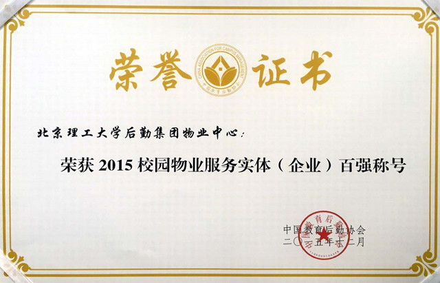 米兰后勤物业荣获“2015校园物业服务实体(企业)百强”称号