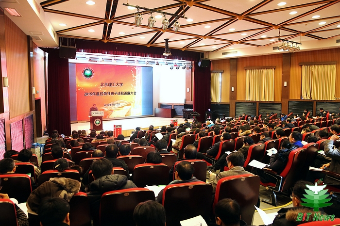 1月12日上午,学校召开2015年度校领导班子及成员述职述廉大会。工信部驻部纪检组监察局副局长刘林、工信部人教司教育处处长冯文全、人教司直属单位干部处干部王敬焘、中央组织部干部监督局一处干部杜启鲁等上级部门领导参加了大会。会议由党委书记张炜主持。