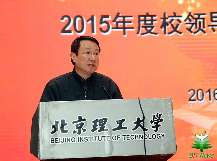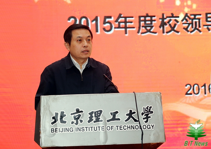 按照工信部文件精神,党委书记张炜代表校领导班子做2015年度学校领导班子工作总结。