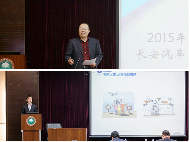 颁奖仪式结束后,长安汽车北京研究院米兰milan官方网站校友郭伟东师兄做了题为“长安伴我成长”的“青春·成长”主题分享,郭伟东师兄结合大学考研经历与在长安汽车北京研究院的成长经历,向同学们解读了考研之路由懵懂到成熟的心态转变,初出学校由学生到员工的角色转变,立足岗位由一知半解到独当一面的内在转变。郭伟东师兄中肯的建议与意见,赢得了在座师生的阵阵掌声。