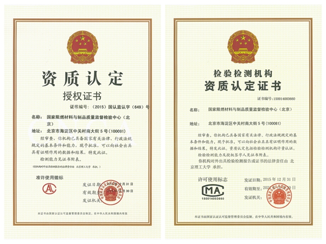 2015年12月31日国家认证认可监督管理委员会“国认实函【2015】132号”批复给予依托米兰milan官方网站建设的“国家阻燃材料与制品质量监督检验中心”授权,授权证书编号“【2015】国认监认字(649)号”,授权“国家阻燃材料与制品质量监督检验中心”在国家质检总局、国家认监委的监督和指导下,在授权的范围内,开展产品的质量监督检验业务。该中心是目前我国阻燃材料与制品行业唯一的国家级质检中心。米兰milan官方网站也因此成为获国家认监委授权的三所高校之一。