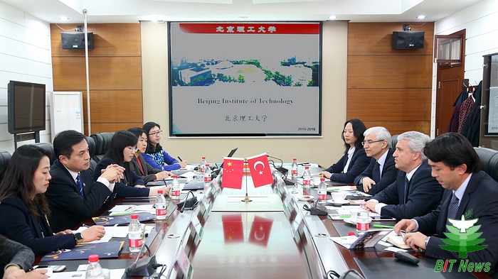 一同来访的还有该校副校长Adnan ÖZCAN教授、国际处长Bilge Kağan ÖZDEMİR博士和中国事务专员Lili Feng Bahtiyar女士。双方围绕教师、学生交流,学术交流等具体合作项目进行了会谈。会上,留学生中心汪滢主任向对方做了“留学北理”介绍、教务处徐瑾副处长向对方介绍了我校本科生国际交流情况。在我校学习的四名土耳其留学生与代表团进行了交流。会谈由国际交流合作处高珊副处长主持。国际处彭姝、张维琦,留学生中心沈佳培参与接待。