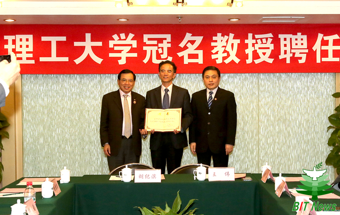 参加聘任仪式的还有学校办公室主任汪本聪,发展规划处处长李镇,科学技术研究院科技合作部部长王伟,人事处处长韩宝玲,机械与车辆学院常务副院长胡纪滨,计算机学院院长黄河燕,教育基金会办公室主任余海滨。