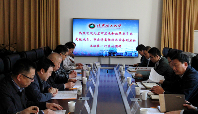 2016年3月14日,北京市发展和改革委员会党组成员、市京津冀协同办常务副主任王海臣来我校调研良乡校区建设规划情况。学校常务副校长杨宾、副校长李和章、校长助理郝志强参加调研。