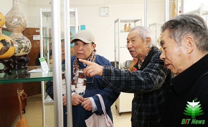 2016年3月15日,由离退休教职工党委、离退休工作处主办,离退休教职工社团协会承办的我校退休教师蔡汝震、周本相葫芦作品艺术展在远志楼323活动室如期开展。艺术展利用葫芦作为载体,以“展示阳光心态、体验美好生活、畅谈发展变化”为主题,展示了老同志老有所乐的阳光心态、歌颂了幸福祥和的美好生活、凸显了国家社会的可喜变化,在老同志中引起强烈反响。