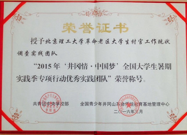日前,共青团中央学校部、全国青少年井冈山革命传统教育基地管理中心举办的2015年“井冈情·中国梦”全国大学生暑期实践季专项行动表彰活动圆满结束。我校实践团队从全国180多所高校的众多团队中脱颖而出,获“优秀课题成果”奖和“优秀实践团队”荣誉称号,课题成果得到了团中央书记处书记傅振邦的高度评价。