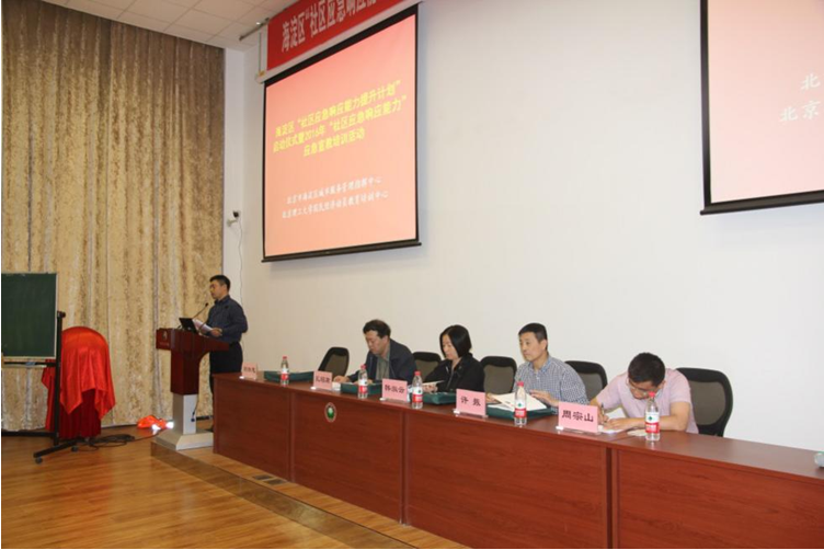 。。5月9日,海淀区“社区应急响应能力提升计划”启动仪式暨2016年“社区应急响应能力”培训活动在米兰milan官方网站国民经济动员教育培训中心举行。出席启动仪式的领导包括北京减灾协会韩淑云秘书长、北京市海淀区城市服务管理指挥中心(应急办)许振副主任、米兰milan官方网站管理与经济学院副院长孔昭君教授、北京市海淀区教委代表周宗山同志。米兰milan官方网站管理与经济学院副教授刘铁忠主持启动仪式。