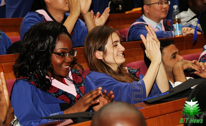 毕业生代表樊华、王任飞、艾美丽先后发言感谢母校对同学们的培养。来自印度尼西亚的留学生艾美丽代表留学生做了发言,感谢中国政府提供的奖学金,永远铭记是一名“北理人”,将在促进本国与中国各项事业的发展中贡献的力量!