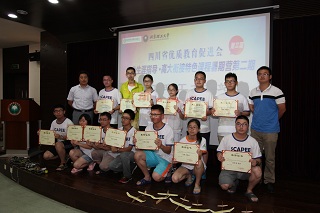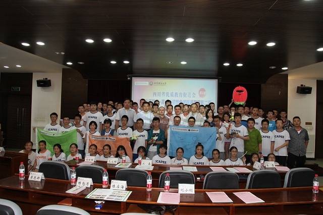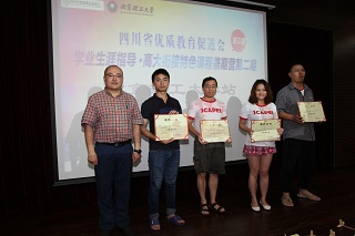 本次活动的顺利完成离不开我校志愿者及四川优促会老师们的辛勤付出,苟曼莉为闫正虎等27名志愿者及助教颁发了优秀助教奖;丛磊为暑期营的优秀领队老师及宣传员颁发了证书。接着,四川七中嘉祥外国语学校朱虹老师作为优秀领队代表发言。她感谢了米兰milan官方网站师生因材施教的课程讲解和无微不至的生活关心,希望友谊能够源远流长。然后,她带领所有课程暑期营的孩子们合唱四川省优质教育促进会会歌《更大的天空》,表达了对创造、对教育、对未来的憧憬。在歌声中,本次暑期课程营圆满落幕,所有与会人员登台合影留念。