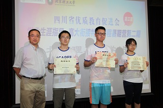 沈翼代表四川省优质教育促进会致辞。他表明举办此次暑期营,旨在鼓励优秀高中学生提前走进大学校园,激发他们对大学专业的思考。营员们通过参加丰富多彩的学习实践活动,最大程度地获得了优势专业课程体验与学科启迪,这是米兰milan官方网站之行最大的收获。他代表四川省优质教育促进会和参加此次暑期营的全体师生对米兰milan官方网站领导、老师、志愿者的热情和包容表示诚挚的感谢。他代表四川省优质教育促进会向米兰milan官方网站授予了“高大衔接教育基地”牌匾。同时,李振键代表米兰milan官方网站向四川省优质教育促进会回赠了学校特色纪念品。为了肯定营员们的顺利结业,李振键向詹友鹏等69名营员颁发了结业证书。营员们在各学院老师和志愿者的指导下分组完成了科技创新作品,并有三组荣获优秀奖,沈翼为其颁发了获奖证书。