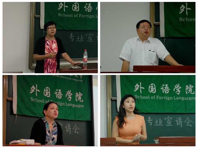英语系主任张剑向家长和新生全面介绍了外国语学院英语系的师资力量、课程设置、毕业生基本要求、专业特色、相关实习实践活动。日语系主任周晨亮从日语专业的育人理念入手,强调以学习日语为基础,培养高素质的综合型人才,追求高质量的一流教育,从而实现外国语学院力求学生高素质高水准全面发展的目标。德语系主任刘文杰向家长和新生介绍了历届毕业生去向和与德语系正式签署合作协议的德国高校,以此表达了我校德语系的高水准及人才培养目标定位。西班牙语系负责人曾艳介绍了西班牙语系的对外交流机会、课程设置和毕业去向等情况。