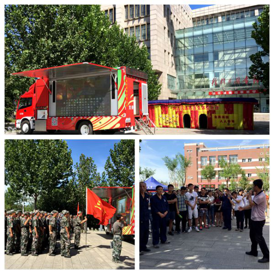 本次活动通过消防科普宣传车对师生和校区工作人员进行宣传,包括消防知识查询及演示,火灾自动化报警与喷淋演示,电路过载短路火灾实验,119报警体验,烟雾模型和模拟逃生帐篷等。师生员工在现场进行消防逃生体验,亲身体验模拟火灾逃生的现场。使师生员工对火灾成因、逃生方法、如何使用灭火设备等消防安全知识有了更深刻的认识。